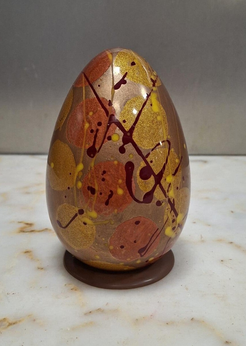 luxe ei in witte, melk of pure chocolade, gekleurd met cacaoboter.