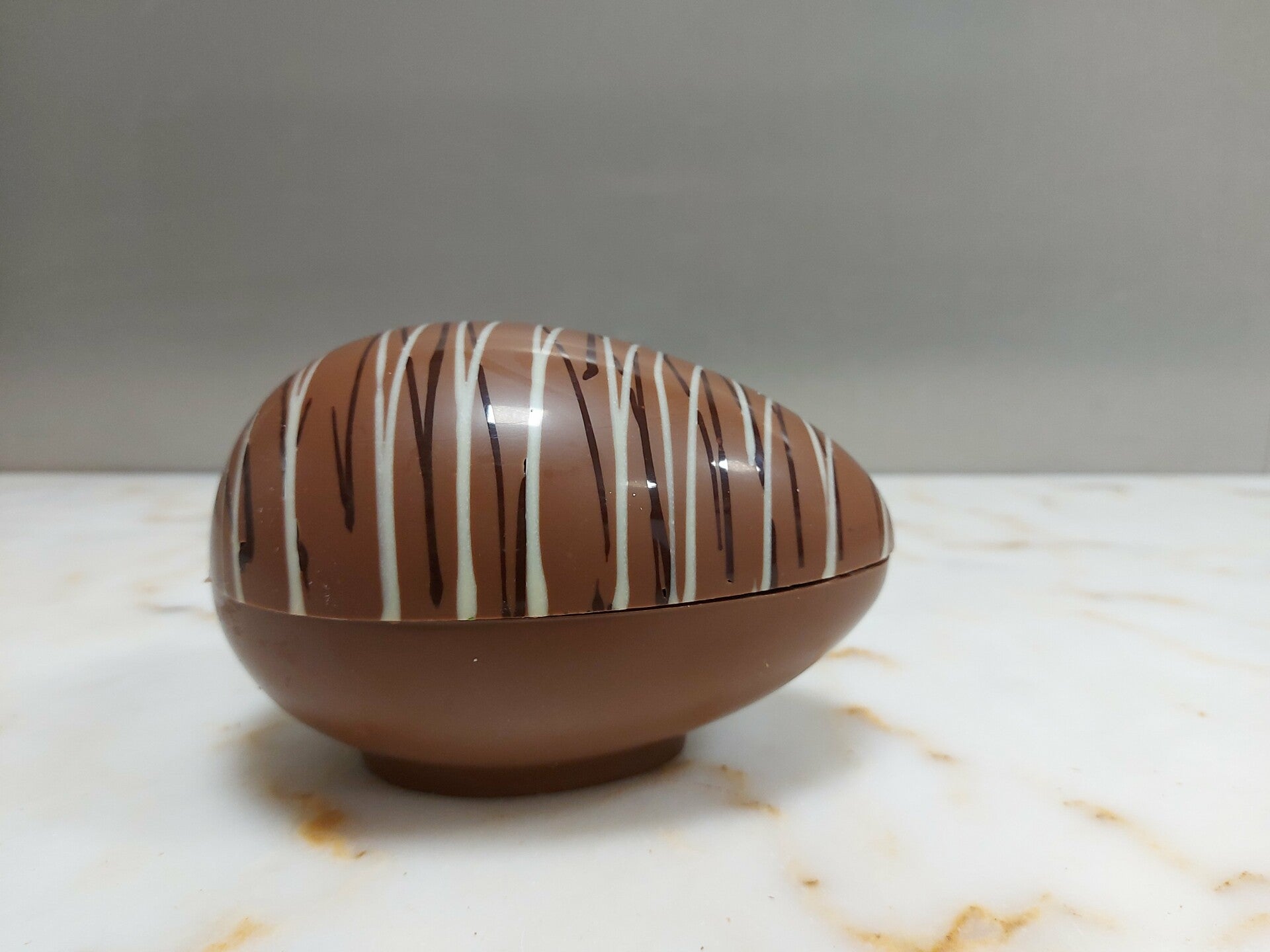 Half chocolade ei gevuld met een mix van paaseitjes en pralines. Het gevulde ei weegt +/- 1100g