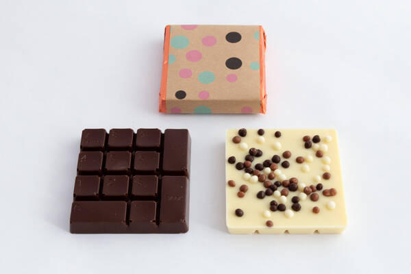 Verkrijgbaar in witte chocolade, melkchocolade en pure chocolade