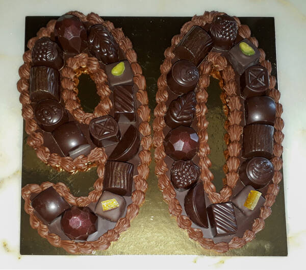 de cijfers kunnen gemaakt worden in witte chocolade, melkchocolade of pure chocolade. De pralines op de cijfer zijn standaard een mix van de 3 chocolades.