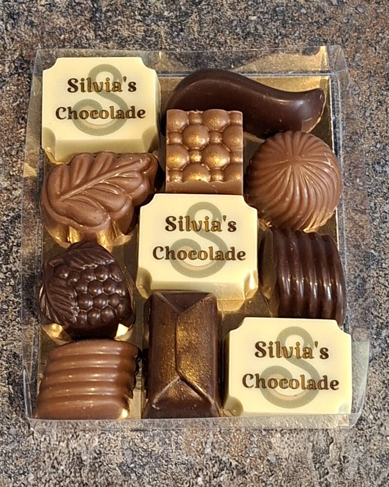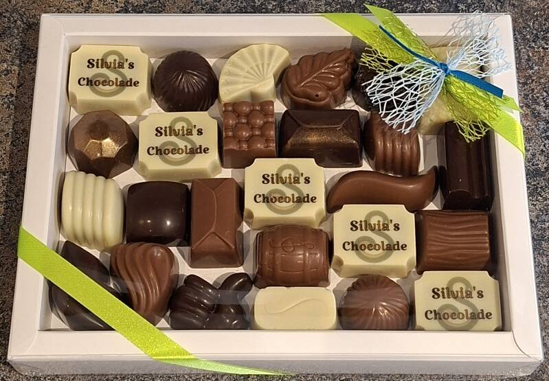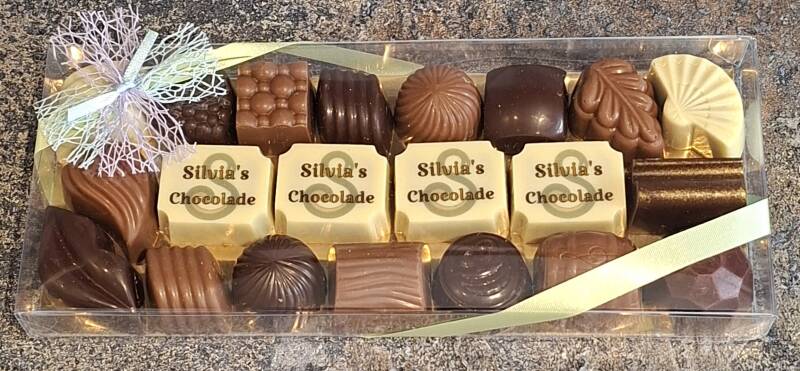 2 logo/foto/tekst pralines + 5 gewone pralines