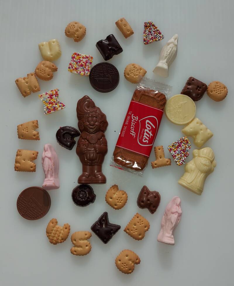 De guimauve, letterkoekjes en lotus speculaas worden aangekocht.